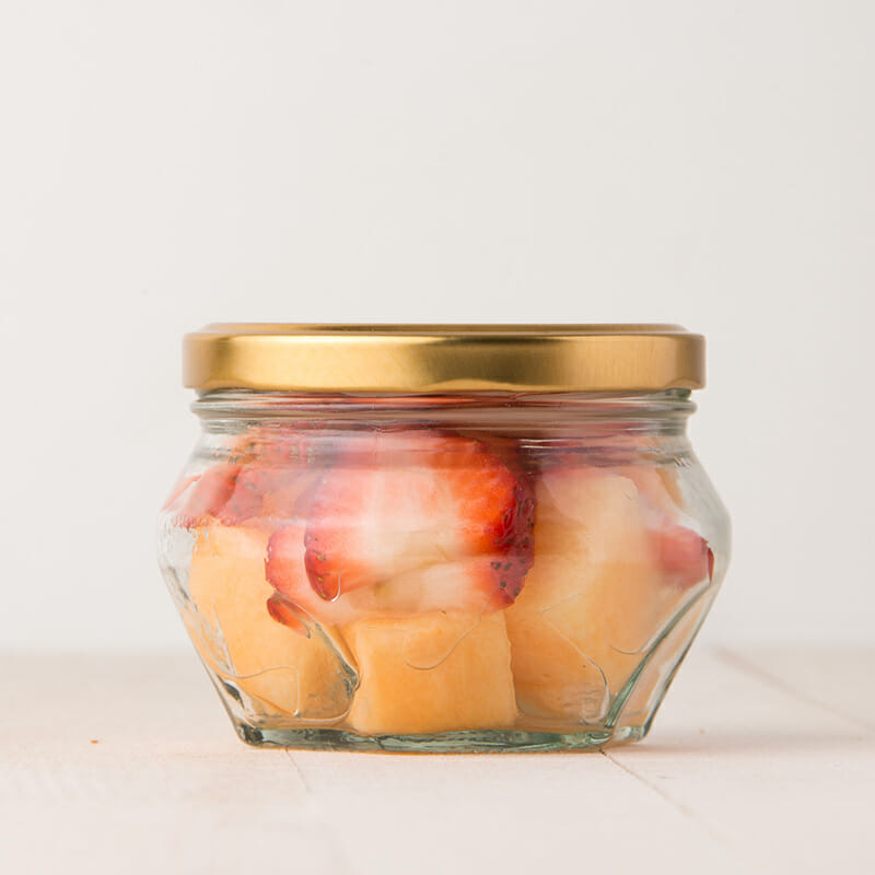 + Melon y fresa o frutas de temporada, presentación en frasco de vidrio